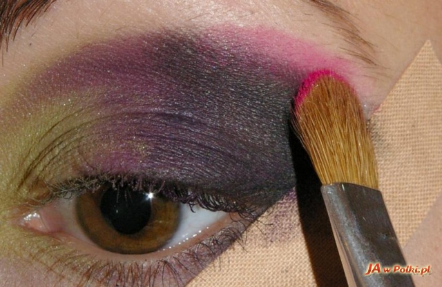 Шаг 5. Наносим немного розовых теней ниже брови над по линии черных теней, чтобы оживить макияж