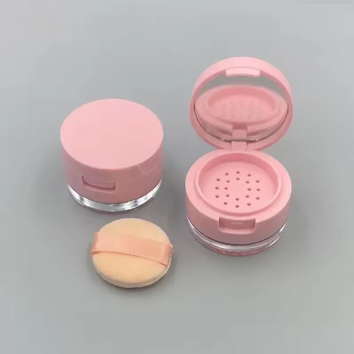 Элегантная компактная баночка розового цвета с зеркалом внутри — идеальный аксессуар для хранения пудры, румян и других сухих или кремовых текстуррассыпных продуктов. Идеально подходит для ежедневного использования и путешествий.